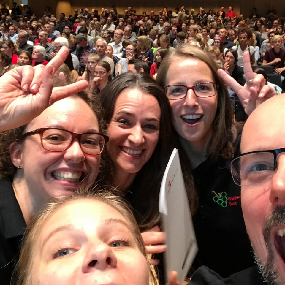 Nach der Blasmusikparty mit „Viera Blech“ und der Bekanntgabe der Finalisten am Samstagabend, können wir uns das Preisträgerkonzert am Sonntagvormittag ganz entspannt anhören. Wir sind absolut fasziniert von den tollen jungen Ensembles, die so präzise und glasklar musizieren und freuen uns, dass wir auch Teil dieses hochklassigen Wettbewerbs sein dürfen. Die spannende Preisverleihung ergibt für uns hervorragende 89,8 Punkte. Nicht nur das, wir dürfen uns auch als Gewinner des „Social-Media“ – Fotowettbewerbs als Ensemble freuen und unsere Marion staubt sogar dort noch den Hauptgewinn ab.